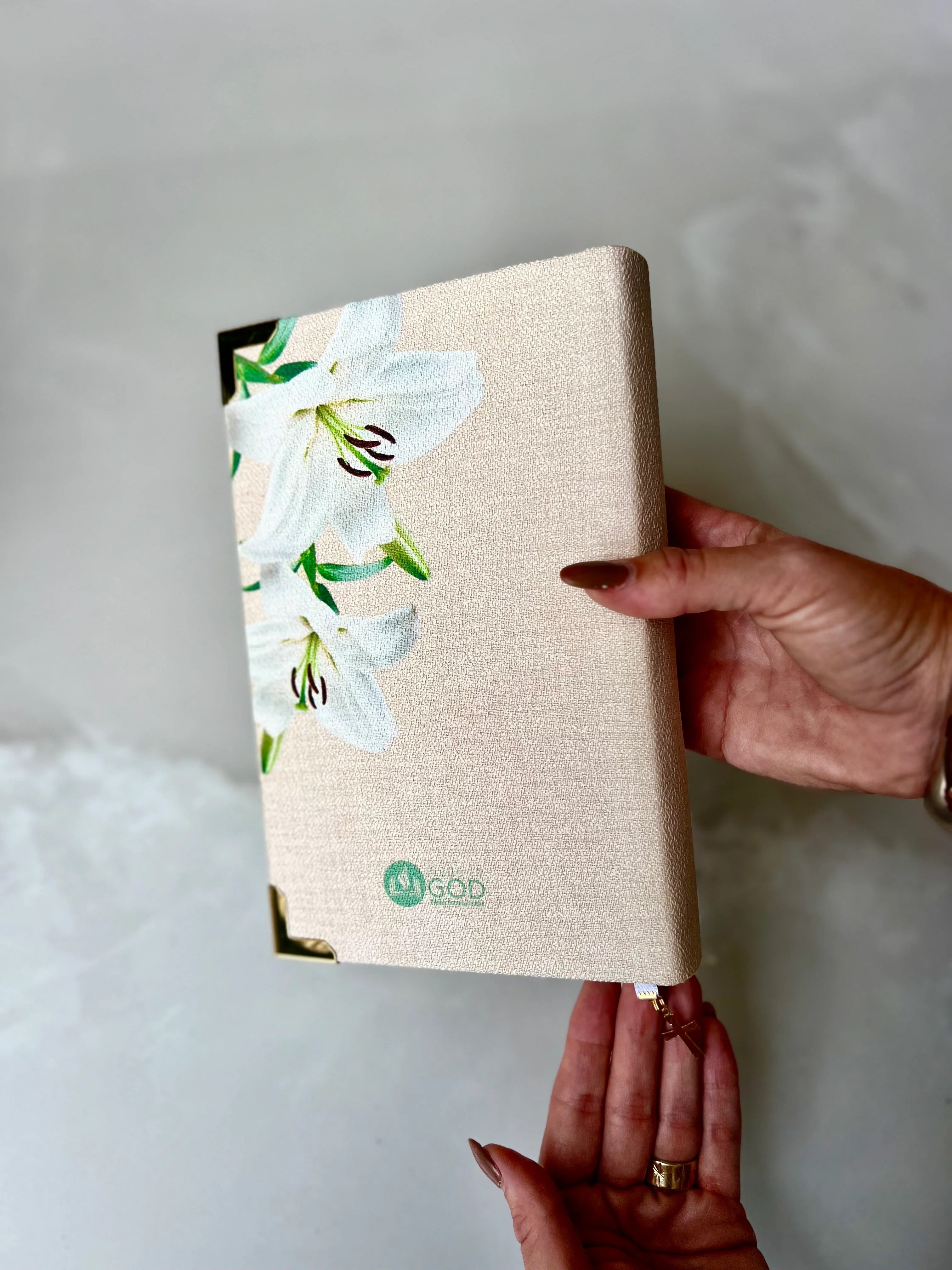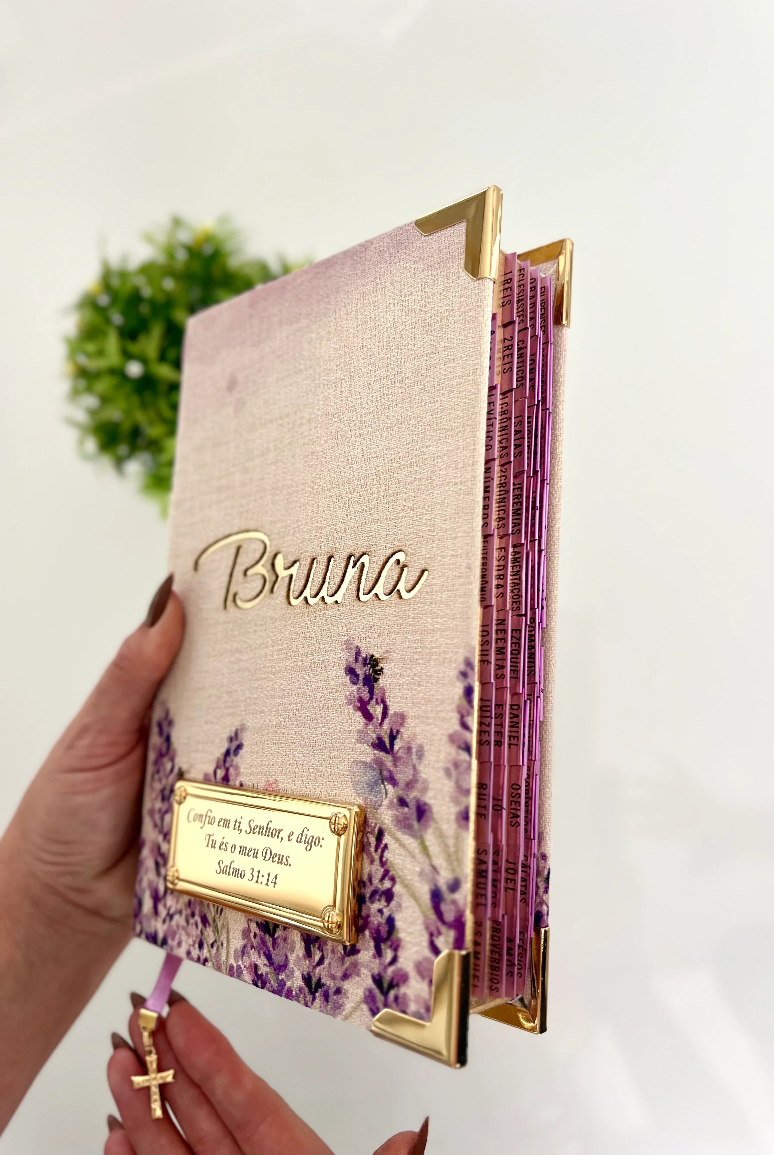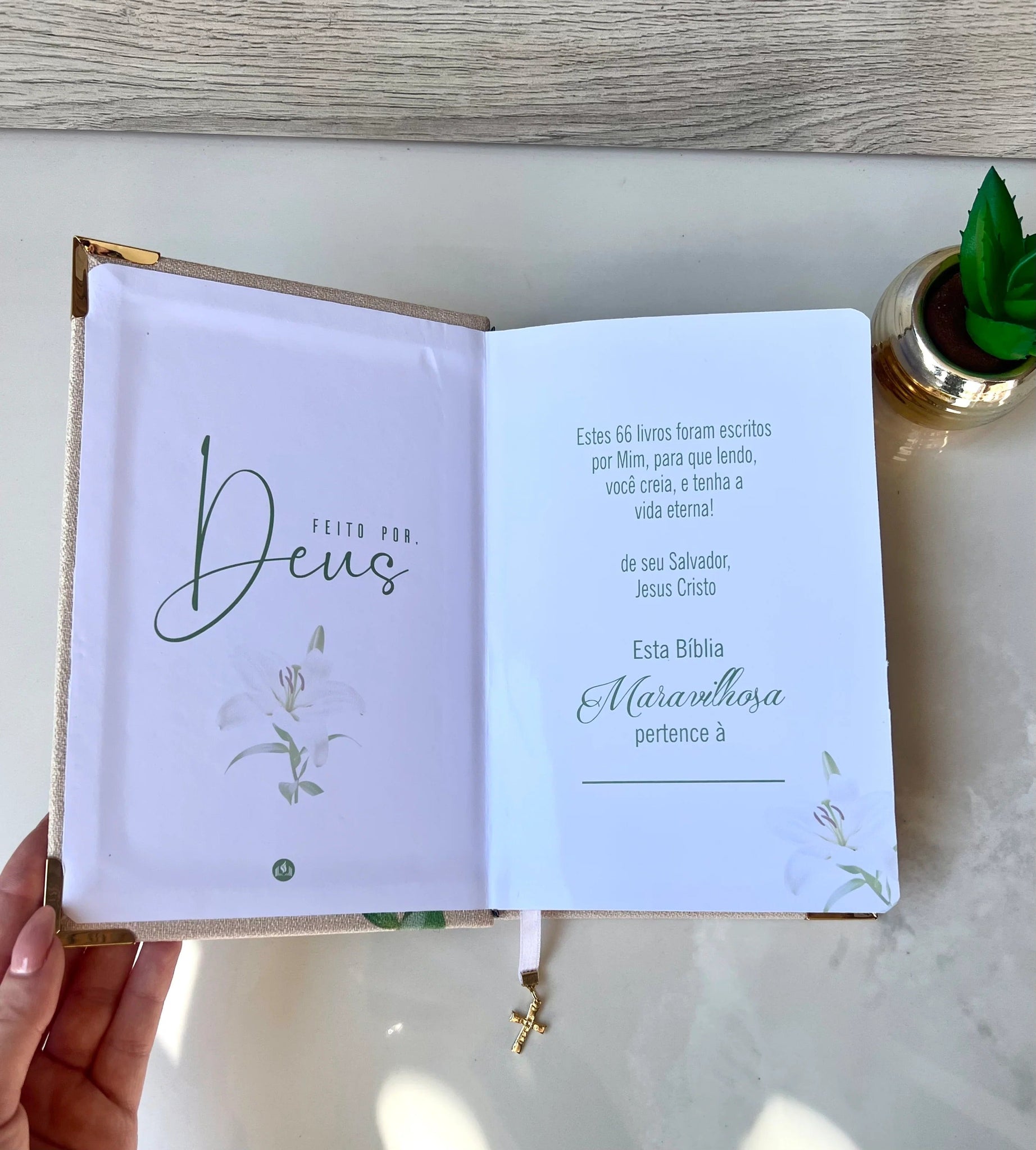 Combo Bíblia Média Lírio em Linho + placa pequena + Cartela de índice